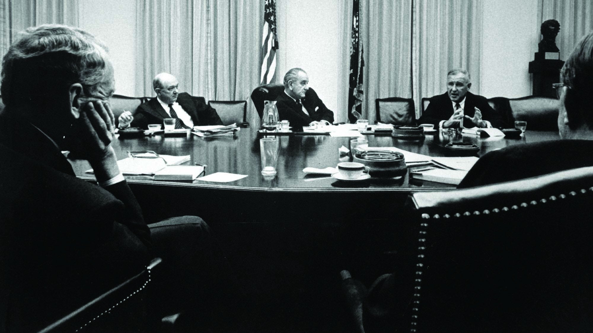 Lyndon B. Johnson entered office with an ambitious plan to expand the scope of government. Dubbed “The Great Society,” his efforts to transform domestic policy were stalled in part by his party’s opposition to America’s mounting commitments in Southeast Asia.
